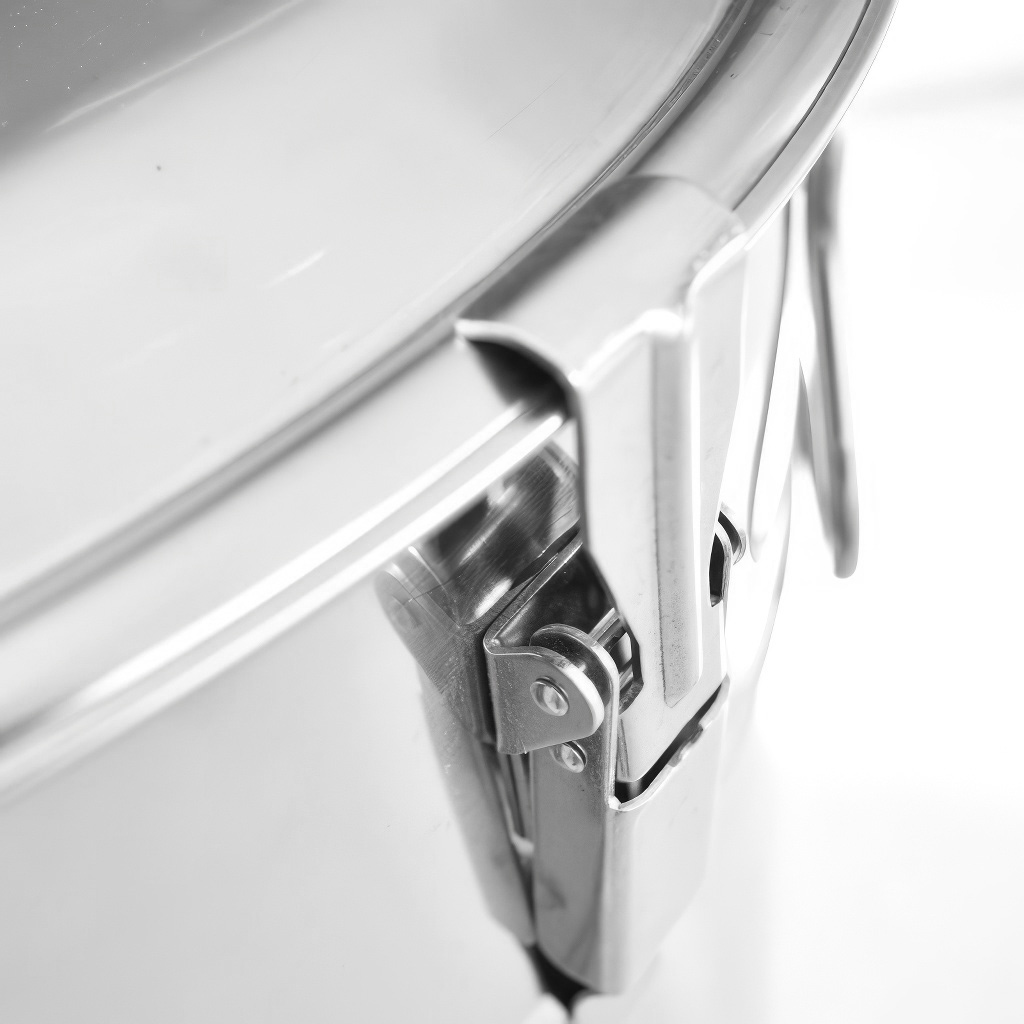 Edelstahldeckel, der fest mit dem Behälter verbunden werden kann. Der