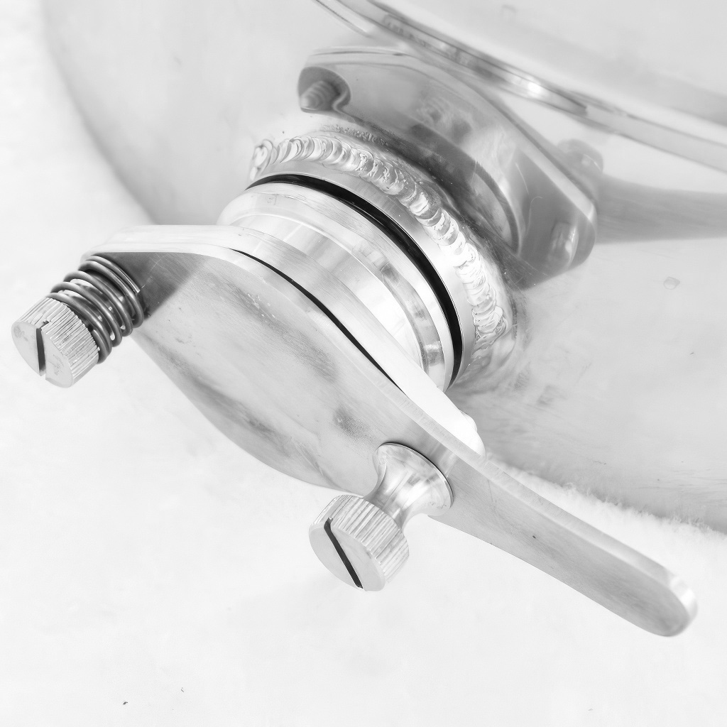 Edelstahl gefertigt. Der Behälter ist mit einem Zapfventil aus Edelstahl