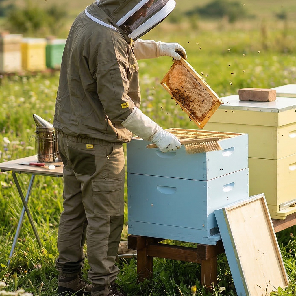 Hochwertige und innovative Schutzanzüge Mellarius in Blusen oder Overalls. Alle Anzüge haben viele Verbesserungen, die nach mehrjährigem Sammeln von Feedback deutscher Imker in den Produktionsprozess eingeflossen sind. Die daraus resultierenden Schutzanzüge sind das Beste, was derzeit auf dem Markt für Schutzkleidung für Imker zu finden ist.